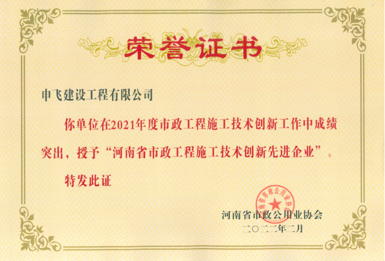 - [04-12]申飛建工再獲“省先進施工企業”、 “市政金杯獎”等多項榮譽